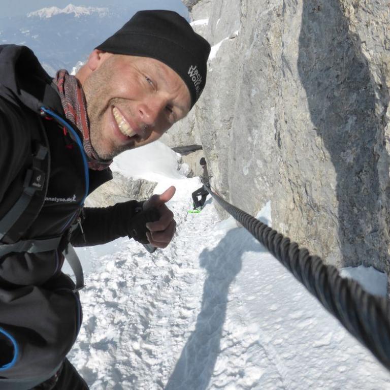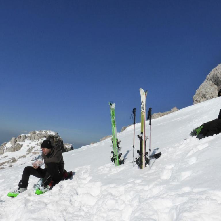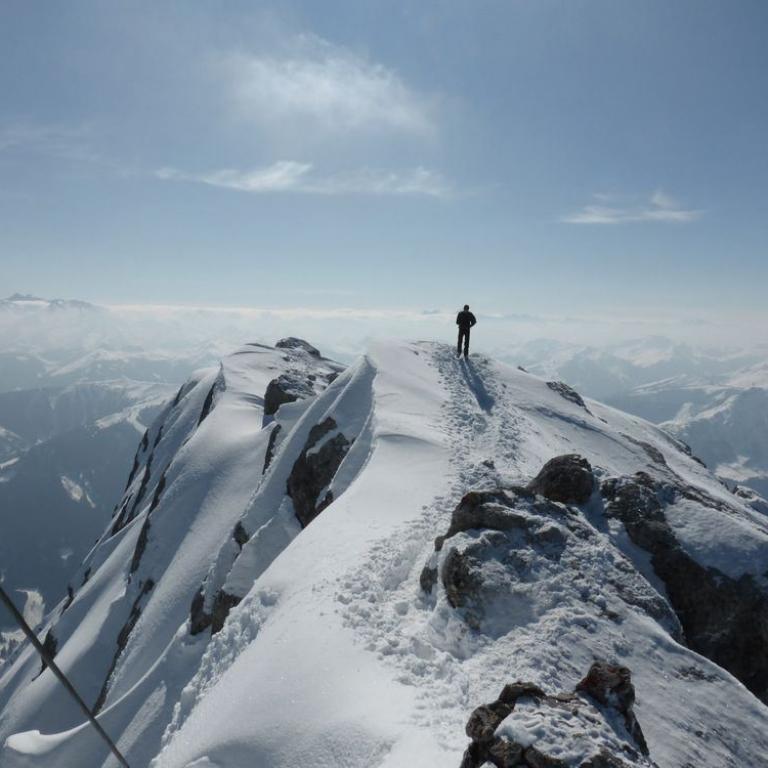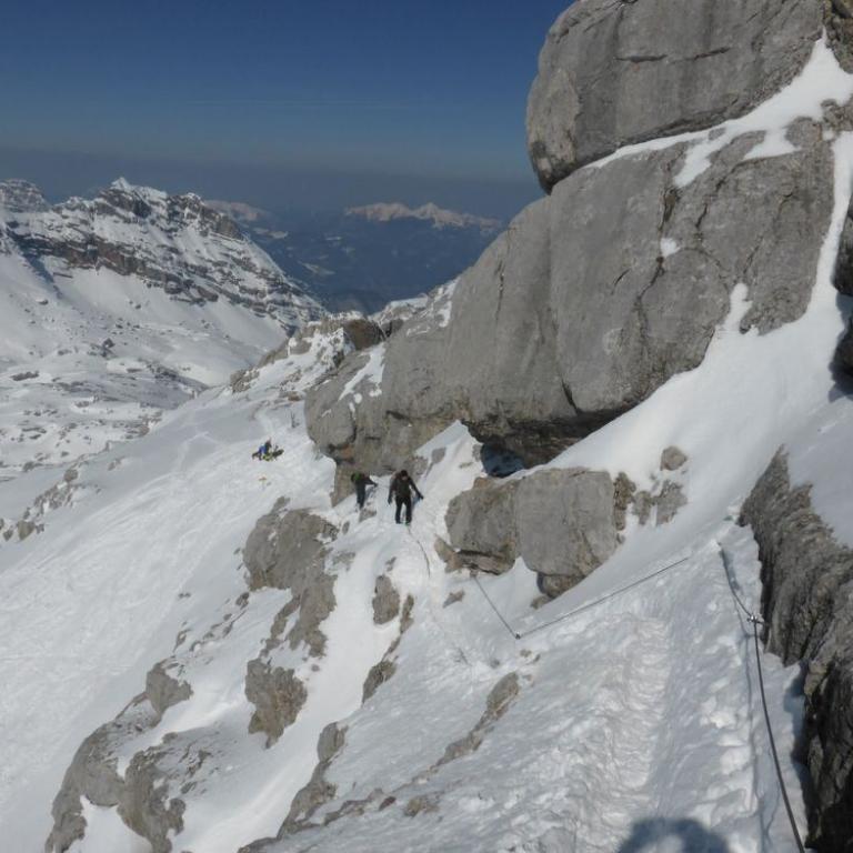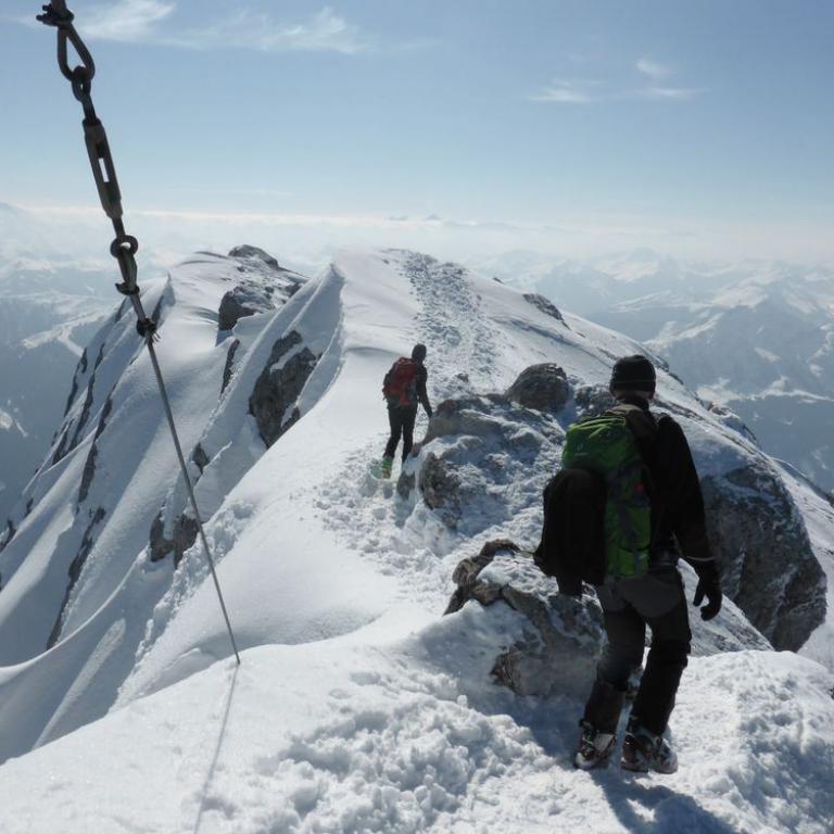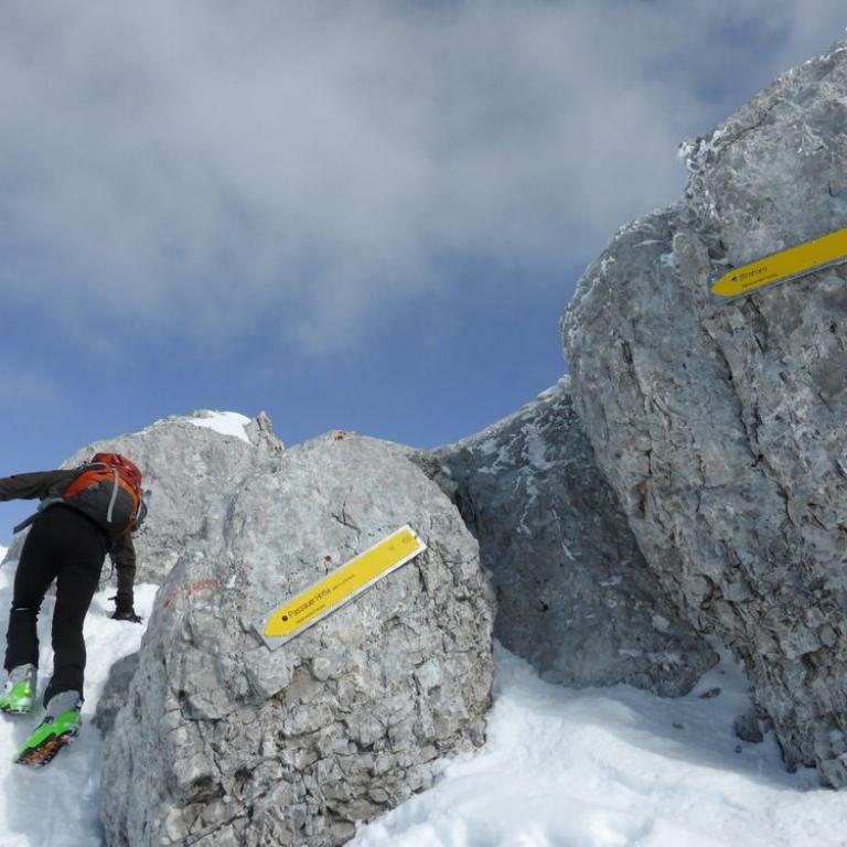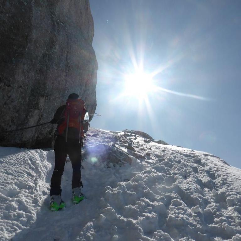 Die Tour stellt hohe Anforderungen an die Kondition. Oben leichte Kletterei zum Gipfel (mit Eisenklammern, die sind aber meist unter dem Schnee).