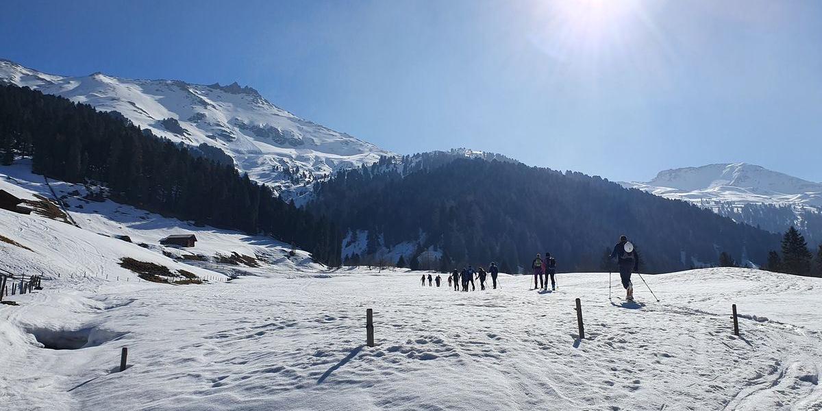 Tourbericht: Das Wetter sollte in den Alpen sonnig werden und es wurde traumhaft sonnig. In Fahrgemeinschaften fuhren wir von Aiterhofen in das Wattental. Am kostenlosen Parkplatz der Kaserne im Talschluss startete unsere Tour. Jeder überprüfte seine LVS Ausrüstung an der dafür vorgesehenen Teststation. Zuerst ging es durch das Wattental links des Baches bis zu den Almflächen der Innermelagalm. Nach den Almhängen erreichten wir eine steilere Waldschneise, wo die ein oder andere Spitzkehre nötig war. Wir kamen in einen lichten Zirbenwald und dann in freies Almgelände. Zuerst marschierten wir durch eine Mulde und dann etwas steiler bis zum Eiskarjoch auf 2550 m. Hier hatten wir die Wahl zwischen der leichteren Torspitze 2663 m und der anspruchsvolleren Eiskarspitze. Die meisten entschieden sich für die pfiffigere Variante. Ein Stück konnten wir über den Rücken mit den Tourenskier aufsteigen, um dann ein Skidepot zu errichten. Zu Fuß machten wir uns an die restlichen Höhenmeter. Über Steilstufen kraxelten wir durch den teilweise kniehohen Schnee bis zum Vorgipfel. Etwas ausgesetzt mussten wir einen Schneegrat bewältigen. Hier war absolute Trittsicherheit erforderlich. Über einen letzten Steilaufschwung stiegen wir zum Hauptgipfel 2611 m mit kleinem Gipfelkreuz auf. Wir wurden mit einer traumhaften Aussicht auf die Gipfel der Tuxer Alpen belohnt. Die Abfahrt erfolgte ähnlich dem Aufstieg. Leider waren die Schneeverhältnisse nicht wirklich berauschend, aber alle kam heil und wohlbehalten im Tal an. Unsere gemütliche Unterkunft, das Hotel Trautmann liegt mitten in Innsbruck. Zusammen gingen wir Abend in ein gemütliches Lokal zum Essen.