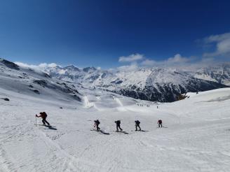 Ausrüstung: Skitourenausrüstung, LVS-Gerät, Sonde, Schaufel