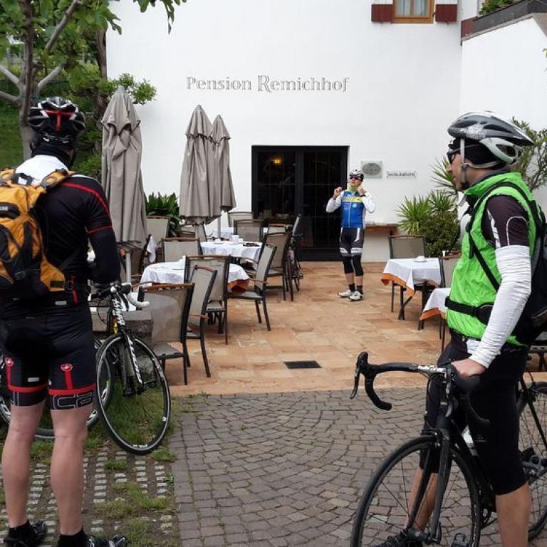 Um 7 Uhr sprang ich aus den Federn. Ich richtete meine Sachen für die bevorstehende Radtour zusammen und ging dann Frühstücken. Ich traute meinen Augen nicht, als Brigitte schon ins Hotel marschierte. Meine Mäuse fuhren schon früh los und kamen super durch und waren entsprechend früh bei uns. Emma war begeistert mich zu sehen :-) Leider musste/durfte ich bald aufs Rad. Eine höhenmeterträchtige Tour war angesagt. Flo, Mane, Woife, Peter und ich starteten um halb 10 in Richtung Bozen. Es war kalt und bewölkt, aber es riss schnell auf. Die Sonne kam heraus und ab Bozen wurde es warm. Wir drückten einen Pass bis auf 1300 Hm hoch. Die Aussicht war traumhaft. Ich fühlte mich ganz gut, aber die Kilometer wurden nicht wirklich mehr. Irgendwie fiel die Gruppe langsam auseinander. Technische, muskuläre und konditionelle Probleme tauchten auf. Ich fuhr auf einmal alleine durch die Berge. In Meran traf ich wieder auf Mane und Woife. Wir fuhren bis Lana, wo wir auf Ralfs Gruppe stießen. Wir kehrten aber ein und stärkten uns. Von hier ging es im Ultental immer bergauf. Wir ratterten die Höhenmeter so runter. 2000 dann 3000 und irgendwann 4000. Immer wieder mussten wir Energie nachschieben. Cola und Mars halfen immer weiter. Die Zeit verging, die Füße kämpften und irgendwann erreichten wir den Mendelpass und hatten die Höhenmeter geschafft. 4300 Hm mussten daran glauben. Und die Zeit war fortgeschritten. Es wurde langsam dunkel. Um 20 Uhr kamen wir wieder im Hotel nach 157 Kilometer an. Meine Mäuse schliefen leider schon nach dem anstrengendem Tag. Mit Woife und Mane ging ich zum Abendessen und 2 Flaschen Wein mussten wir dann noch an der Hotelbar genießen, bevor wir um 0 Uhr ins Bett fielen :-)