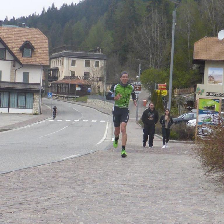 Nach einer Woche Trainingslager und vielen Kilometern und Höhenmetern, sollte auch nochmal geballert werden. Was liegt da näher? Natürlich der Kalterer See Triathlon, als erster Triathlon in der Saison. Eigentlich liebe ich mehr die langen Strecken mit 10 Stunden aufwärts, aber so zwischendurch ist eine Olympische Distanz (1,5 km Swim - 40 km Bike - 10 km Run) mit ein paar Höhenmetern auch nicht schlecht. Vormittags holten wir die Startunterlagen, während Emma, Opa, Oma und Brigitte Kaltern besichtigten. Das Wetter war durchwachsen , aber es regnete nicht. Naja mal schauen was heute geht. Motiviert bin ich natürlich wie eh und je. Langsam gingen wir nach dem Rad einchecken zum Start. Emma schlief leider im Wagerl ein und konnte mich nicht mehr anfeuern :-) Um 14:18 Uhr war ich dran und ging in das 16 Grad warme (eiskalte) Wasser. Ich schwamm in Richtung erste Boje. Es ging nicht gut, aber auch nicht schlecht. Nach der Boje fühlte ich mich besser und die Kälte machte mir nichts mehr aus. Nach knapp 27 Minuten stieg ich nach einem Zwischenlandgang dann endgültig aus dem Wasser und sprintete in die Wechselzone. Rauf aufs Rad und ab ging es den ersten Anstieg hoch. Ich war nur am Überholen, anscheinend können die Italiener keine Berge fahren. Ich sauste dann die Serpentinen nach unten und war komplett alleine. Aufeinmal drehte ich mich um und hinter mir klebten in dem Windschatten freigegebenen Rennen 4 Triathleten. Ok ich ballerte am Ostufer des Sees entlang und wir wechselten uns ab. Cool das war sehr entspannt und eigentlich sogar locker. Nach der ersten Runde ging es wieder 150 Höhenmeter nach oben. Wieder ließ ich alle stehen und war weit vor allen am Berg oben und konnte nach unten sausen. Irgendwann kriegte mich dann auf der Geraden die Gruppe wieder und ich fuhr in vorderster Front, wie auch Windschatten. So ging es auch in der dritten Runde. Krass waren die alle schlecht am Berg. Egal, aber ich konnte Stolz sein, mich hat kein einziger am Rad überholt :-) Nach 1 Stunde 10 Minuten hatte ich die 40 Kilometer und 450 Höhenmeter durchgedrückt. Ab in die Wechselzone und rein in die Laufschuhe. Jetzt kam mein Part, Laufen und Ballern. 3 mal 3,2 Kilometer mit ein paar Höhenmetern waren angesagt. Attacke und ab ging es im 3:40 er Schnitt. Fuck war ich gut drauf. Ich lief und lief teilweise im 3:20 er Schnitt. Bergauf wurde ich ausgebremst. In der 2 ten Runde überholte mich Ralf. Sau stark, mein Coach war Hammer unterwegs und wird sich den Altersklassesieg holen. Respekt. Ich versuchte dran zu bleiben, musste aber reißen lassen. Brigitte und ihre Eltern feuerten mich jede Runde an und Emma schlief :-) In der letzten Runde gab ich alles und überholte was das Zeug hielt und konnte auf die knapp 10 Kilometer einen 4 er Schnitt halten. Das machte Spaß. Zum Schluß kam ich dann als 113 Gesamt von über 600 Startern ins Ziel. In der Altersklasse holte ich mir den 22. Platz in 2h 18 min 35 sec. Für mich war das eine super Zeit bei der Top Besetzung. Viele Profis waren am Start, somit konnte ich sehr zufrieden sein. Am Abend gab es ein leckeres Abendessen und ein paar Wein in einer gemütlichen Laufstilanalyse Runde...