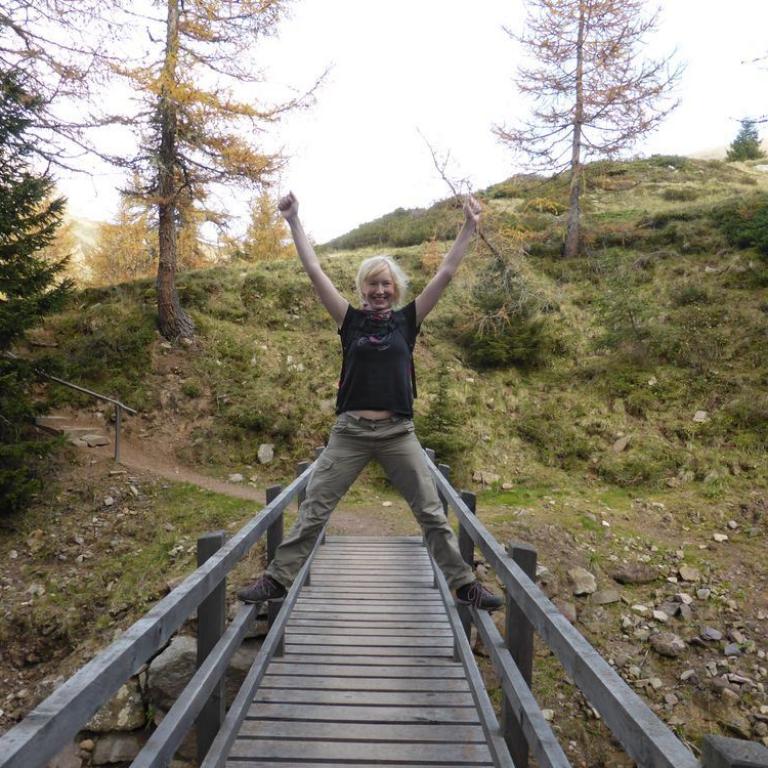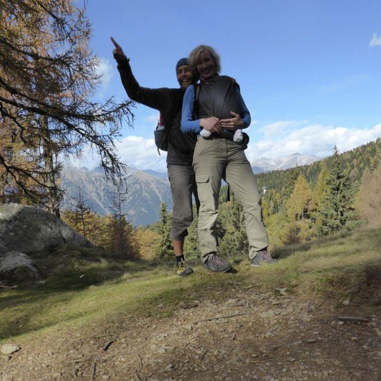 Wie jeden Tag ließen wir es auch heute ruhig angehen. Nach dem Frühstück lasen wir noch und spielten mit der kleinen Emma, bis sie um ca. 11 Uhr ihr Fläschchen bekam. Dann brachen wir auf und fuhren nach Hafling und weiter nach Falzeben auf 1609 m. Hier starteten wir unsere Wanderung, zuerst durch den Wald bis wir zur Moschwaldalm auf 1760 m kamen. Hier schien die Sonne und die Bäume erstrahlten im besonderen Herbstlicht. Von hier führte uns der Trail teilweise ansteigend und teilweise fallend bis zur Meraner Hütte auf 1960 m. Hier hatten wir eine herrliche Aussicht auf Ifinger und Co. Wir kehrten natürlich ein, da Emma und auch Mama und Papa Hunger hatten. Später stiegen wir dann bei Sonnenschein zum Parkplatz ab. Am Abend verbrachten wir noch ein paar Minuten am Balkon und gingen dann in die Sauna, bevor wir uns Nudeln kochten.