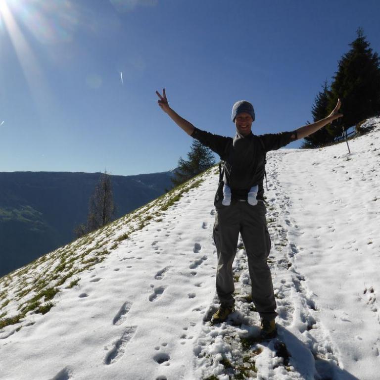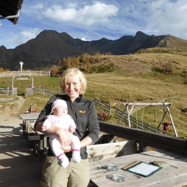 Fazit: Allen Kritikern zum Trotz fuhren wir mit unserer 2 Monate alten Maus in die Berge und verbrachten eine wunderschöne Zeit mit vielen Berg, Mountainbike und Klettertouren. Auch mit Baby, dem richtigen Timing, Ruhe und Gelassenheit ist alles möglich. Unsere kleine Emma hatte einen riesen Spaß, vor allem auf den Almhütten. Im Tragtuch fühlte sie sich immer pudelwohl und schlief die meiste Zeit. Dadurch waren Tagestouren mit über 1000 Höhenmeter Aufstieg ohne Probleme möglich. Emma bestieg auch ihren bisher höchsten Gipfel, die Mutspitze mit 2296 m. Mit unserer kleinen Maus hatten wir so richtig viel Spaß und ihr hatten die vielen Touren sicher nicht geschadet, da sie fast immer lachte und fröhlich war. Der 3 1/2 wöchige Elternzeiturlaub im Chiemgau und Südtirol war mit Baby total unkompliziert und hat Brigitte und mir sehr viel Freude bereitet. Es war einer der schönsten Urlaube in unserem Leben und machte mit Emma gleich doppelt so viel Spaß. Wir freuen uns schon auf den 2. Teil meiner Elternzeit im nächsten Juni wo es uns nach Schottland verschlagen wird.