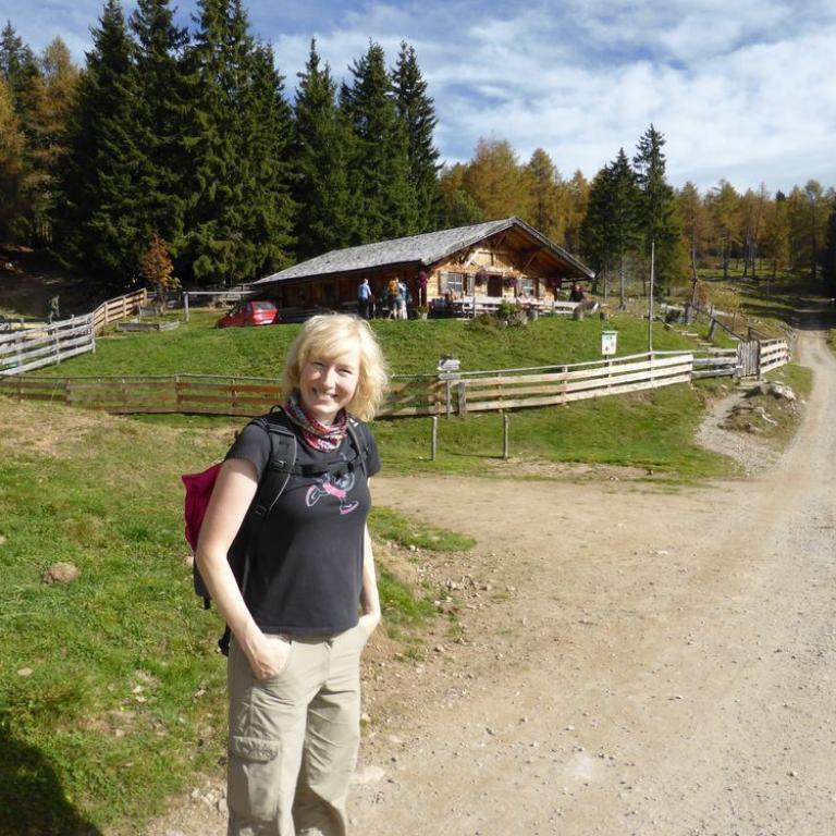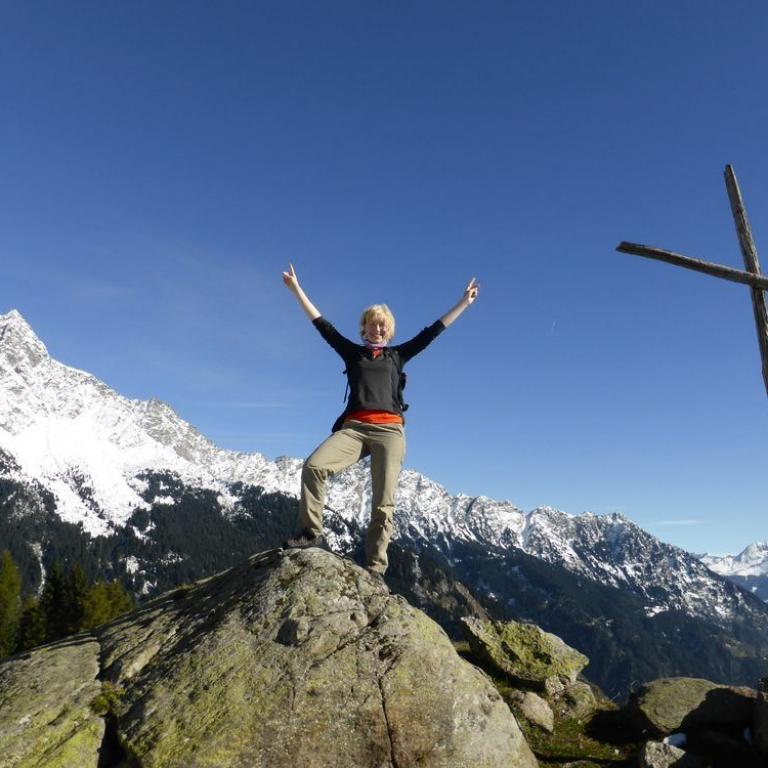 Wie jeden Tag ließen wir es auch heute ruhig angehen. Nach dem Frühstück lasen wir noch und spielten mit der kleinen Emma, bis sie um ca. 11 Uhr ihr Fläschchen bekam. Dann brachen wir auf und fuhren nach Hafling und weiter nach Falzeben auf 1609 m. Hier starteten wir unsere Wanderung, zuerst durch den Wald bis wir zur Moschwaldalm auf 1760 m kamen. Hier schien die Sonne und die Bäume erstrahlten im besonderen Herbstlicht. Von hier führte uns der Trail teilweise ansteigend und teilweise fallend bis zur Meraner Hütte auf 1960 m. Hier hatten wir eine herrliche Aussicht auf Ifinger und Co. Wir kehrten natürlich ein, da Emma und auch Mama und Papa Hunger hatten. Später stiegen wir dann bei Sonnenschein zum Parkplatz ab. Am Abend verbrachten wir noch ein paar Minuten am Balkon und gingen dann in die Sauna, bevor wir uns Nudeln kochten.