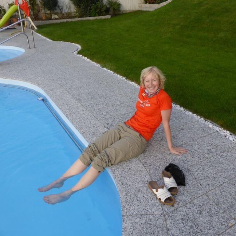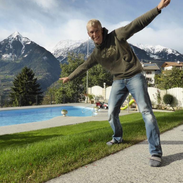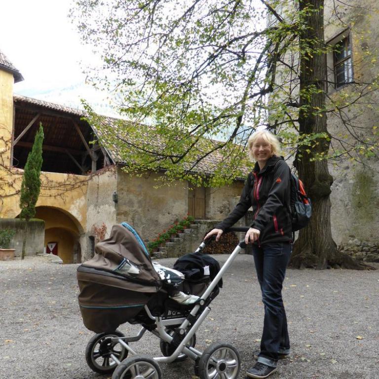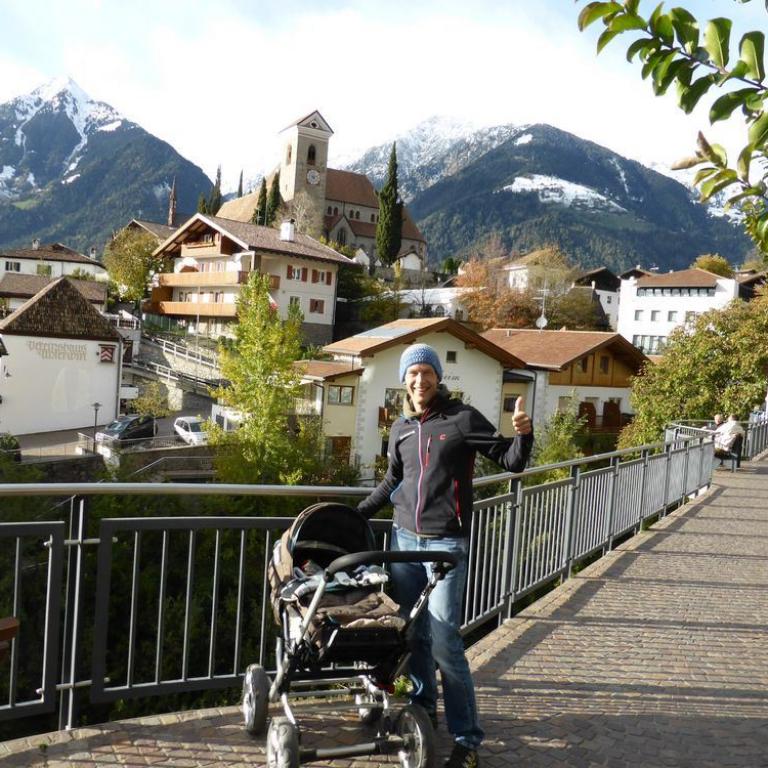 Auch heute ließen wir es wieder gemütlich angehen. Nach dem Frühstück und natürlich Raubtierfütterung fuhren wir nach Meran hinunter. Wir parkten bei der Therme und marschierten mit dem Kinderwagen bewaffnet zum Meraner Markt. Leider gab es nur Ramsch und wir fanden nichts passendes. Danach aßen wir Bruschetta auf dem Traubenfest von Meran, wo wir mit Livemusik unterhalten wurden. Wir schlenderten noch durch die Gassen und bummelten durch die Läden. Am Nachmittag machten wir es uns auf dem Balkon in der Sonne gemütlich. Natürlich konnte ich mich nicht lange ruhig halten und ging zum deshalb Laufen. Zuerst rauf nach St. Georgen und dann am Waalweg entlang und dann immer weiter den Schennaberg hinauf. Ingesamt war ich bei dem herrlichen Wetter 11 km und 500 Hm unterwegs. Danach startete Brigitte zu einer Laufeinheit, während ich Emma versorgte. Am Abend gingen wir gemütlich in einer Pizzeria zum Essen und ließen einen weiteren herrlichen Tag ausklingen.