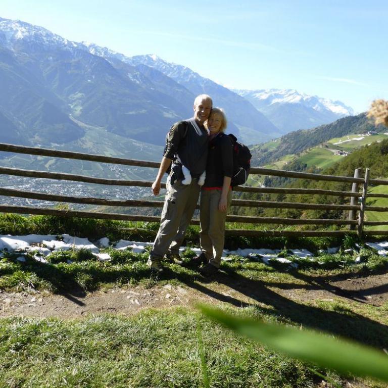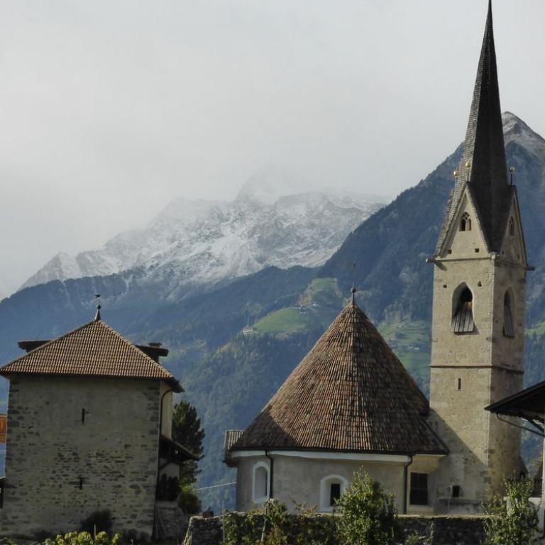 Um 8 Uhr schauten wir aus dem Fenster und sahen ganz schön viel Schnee auf den Bergen. Ich startete dann zu einer kleinen Laufrunde durch Schenna und kaufte gleich mal Semmeln, Brezn, Käse und Kaminwurzn. Nach dem Frühstück fuhren wir zuerst eine kleine Straße den Schennaberg hoch, bis wir Schnee erreichten, dann ging es weiter nach Algund in ein Outletcenter. Ich fand mir Traillaufschuhe, aber ansonsten gab es nicht viel Interessantes. Am Nachmittag wagelten wir bei herrlichem Sonnenschein durch Schenna, zur Kirche, Burg und bummelten durch die Geschäfte. Am Abend kochten wir uns Nudeln und dazu gab es Wein.