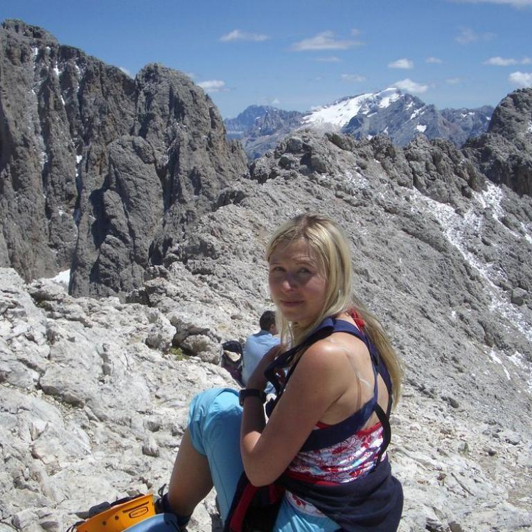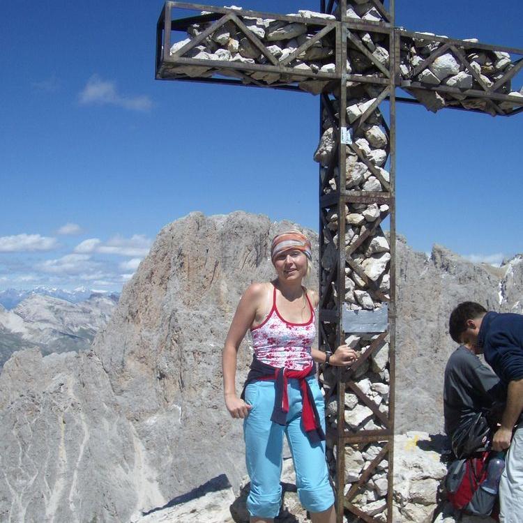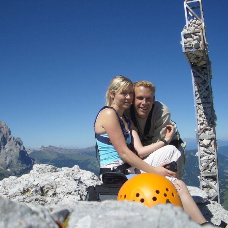 Von hier aus geht es los Richtung Cirspitzen. Nach ca. halbstündigem Marsch erreichen wir den Einstieg zum Klettersteig der großen Cir (2592 Meter), der aber relativ einfach und ideal für Anfänger ist. Wir haben eine herrlich Aussicht auf den Piz Boè (3152 Meter). Nach ca. 1 1/2 Stunden erreichen wir den Gipfel. Die Klettersteigausrüstung haben wir nur teilweise benötigt und es bestand keinerlei Gefahr.