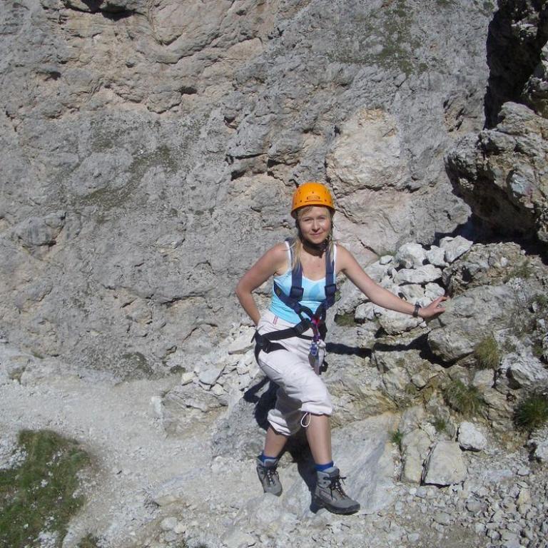 Von hier aus geht es los Richtung Cirspitzen. Nach ca. halbstündigem Marsch erreichen wir den Einstieg zum Klettersteig der großen Cir (2592 Meter), der aber relativ einfach und ideal für Anfänger ist. Wir haben eine herrlich Aussicht auf den Piz Boè (3152 Meter). Nach ca. 1 1/2 Stunden erreichen wir den Gipfel. Die Klettersteigausrüstung haben wir nur teilweise benötigt und es bestand keinerlei Gefahr.