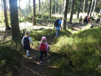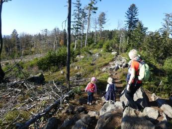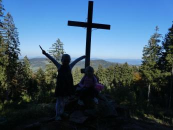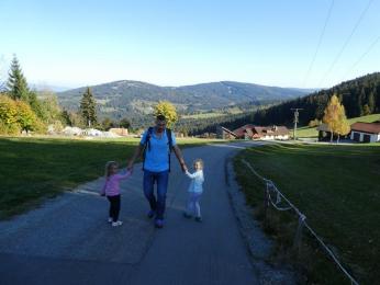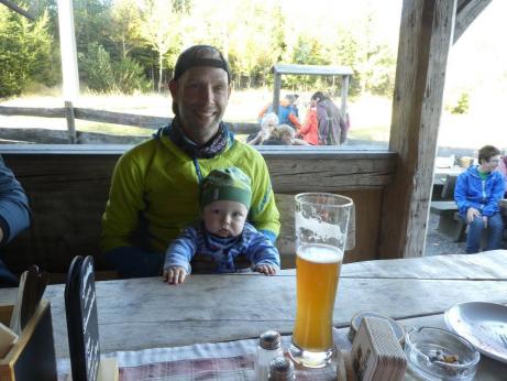 Vom Parkplatz Riedern unterhalb Maibrunn wanderten wir mit meinem Arbeitskollegen Daniel, seiner Tochter und seinen Eltern auf dem Weg "nur für Geübte" bis zum Hadriwa Gipfel. Mit 922 m Höhe ist der Hadriwa ein bewaldeter Berg bei Elisabethszell, Gemeinde Haibach im Bayerischen Wald. Er ist die höchste Erhebung des Höhenzugs zwischen dem Klinglbach und Grüner Bach im Osten und Elisabethszeller Bach und der Menach mit ihren Seitenbächen im Westen. Timi war bei Brigitte in der Trage und Emma kletterte mit Emily über die vielen Felsen. Die Mädels hatten riesig Spaß und freuten sich über den Gipfelsieg. Natürlich durfte dann die Einkehr in der Hansl Hütte nicht fehlen :-) Auf dem normalen Wanderweg marschierten wir über einen Spielplatz zurück zum Parkplatz Riedern.