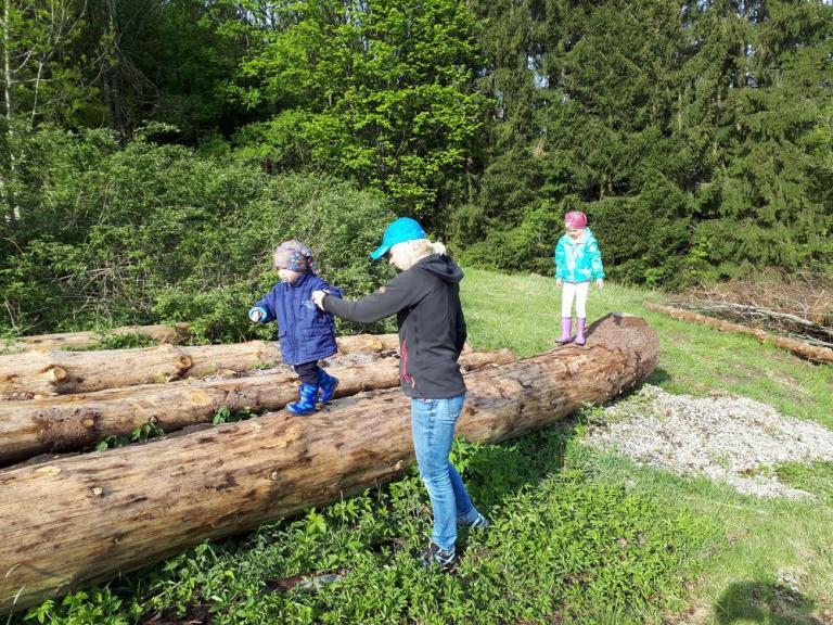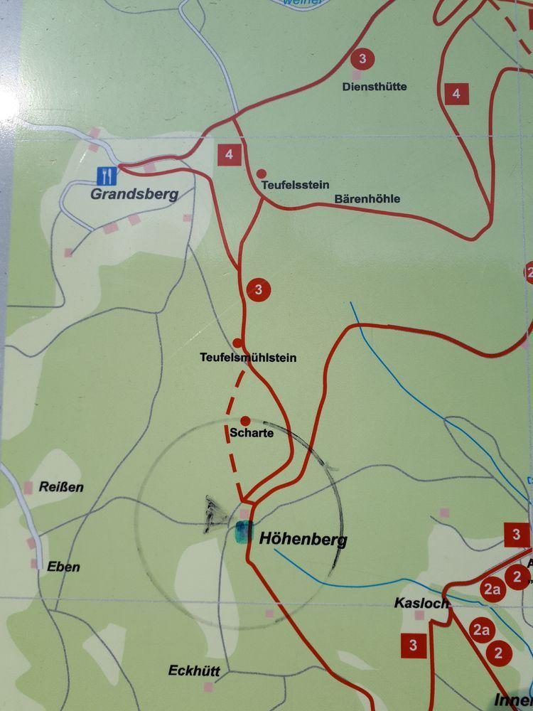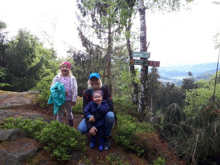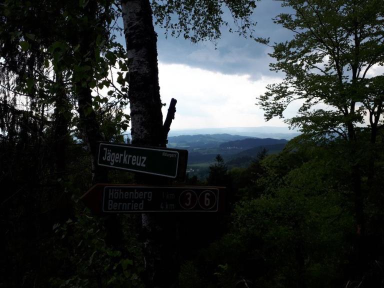 Am späten Nachmittag fuhren wir in Richtung Bernried über Wimpassing bis nach Ed, wo wir am Wanderparkplatz neben der Kapelle parkten. Von hier wanderten wir bis zu dem einsamen Weiler Höhenberg. Hier ging es zum "Klettersteig" in Richtung Jägerkreuz. Wir kraxelten den steilen und felsigen Weg nach oben. Emma hat riesig Spaß und kämpfte sich über die moosbewachsenen Felsen. Am Jägerkreuz hatten wir eine herrliche Aussicht in Richtung Perasdorf und dem dahinter liegenden Gäuboden. Natürlich gehörte eine kleine Brotzeit zur Wanderung. Nicht das meine Zwerge verhungern würden :-) Weiter wanderten wir in Richtung Grandsberg und bogen kurz vor dem Teufelsmühlenstein auf den Wanderweg nach Höhenberg ab. Nach knapp 2 Stunden erreichten wir wieder unser Auto...