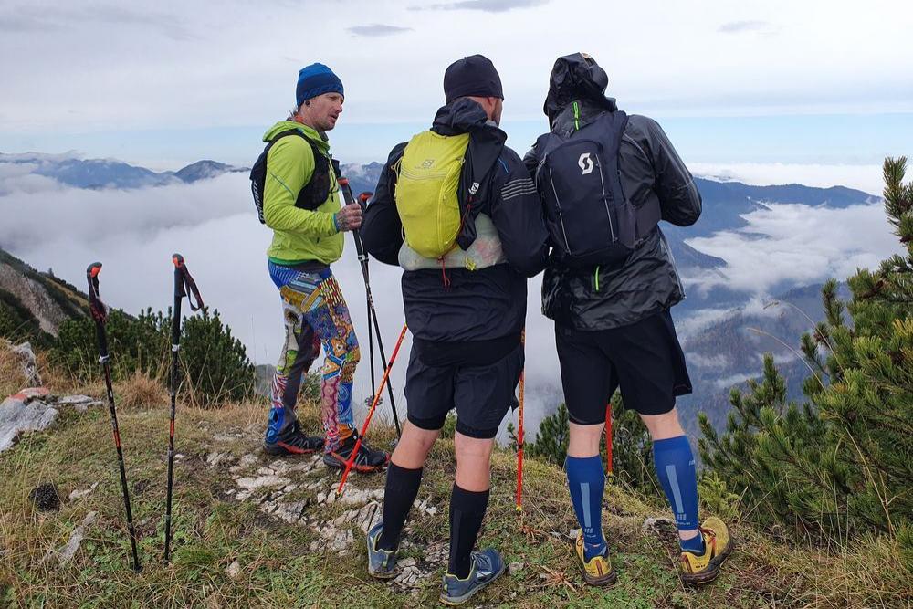 Zum ersten Mal gibt es beim Alpenverein Straubing eine Trailrun-Runde. Mein Kumpel Jupp organisierte die Tour. Es war ja klar das wir vom TAR Stammtisch vertreten sind. Am Parkplatz Siebenhütten liefen wir zuerst auf die Halserspitze. Es war bewölkt, aber trotzdem gaben die Wolken immer wieder einen herrlichen Panoramablick frei. Wir überschritten den Blauberg-Kamm, um dann in teilweise spannender Kletterei im 1. Schwierigkeitsgrad durch die Wolfsschlucht nach unten zu klettern und von dort das Tal hinaus zu laufen.