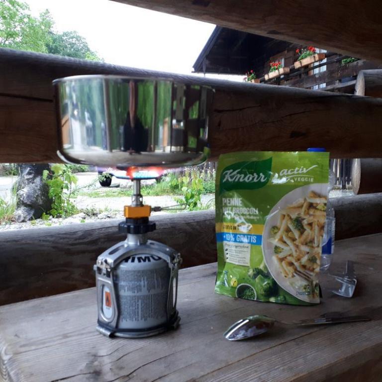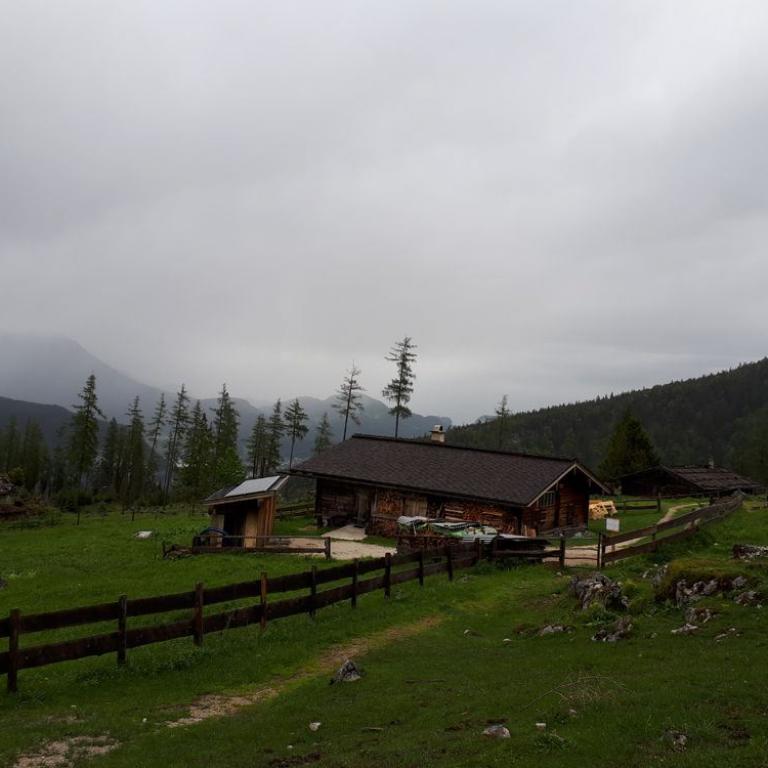 In der Nacht regnete es etwas, aber pünktlich um 7 Uhr hörte es auf. Der heutige Plan war bis Unterjettenberg bei Schneizlreuth über den Rauschberg zu gelangen. Brigitte wanderte vom Parkplatz die Westseite auf den Rauschberg. Ich fuhr mit dem Auto nach Unterjettenbach und von dort mit dem MTB bis Weißbach an der Alpenstraße. Hier stellte ich an einem Wanderparkplatz mein MTB an einen Baum und lief auf Forststraßen und Trails bis zur Reiteralm auf 1000 Hm. Leider musste ich wieder viele Höhenmeter hergeben, da ich von der Reiteralm bis auf 700 Hm absteigen musste, um von dort zur Harbach Alm und Bichleralm zu gelangen. Ab hier ging es einen Wurzeltrail steil nach oben. Leider fing es zu regnen an. Aber im Wald machte es mir nicht viel aus und bergauf schwitzte ich eh. Jetzt musste ich mich sputen, denn Brigitte hatte den Rauschberggipfel schon erreicht. Meine Frau war viel zu schnell beim Aufstieg auf den Gipfel. Shit mein Wegweiser zeigte 3 Stunden bis zum Gipfel :-( Aber das motivierte mich umso mehr, schneller zu sein. 1 Stunde später stand ich auf dem Rauschberggipfel (1671 m) bei herrlichem Sonnenschein und bei meiner Brigitte :-) Zusammen liefen wir auf meinen Aufstiegsweg bis zur Harbach Alm. Bei Sonnenschein und blauem Himmel kauften wir uns in der urigen Alm einen Kaiserschmarrn und eine Radlermaß. Bei dieser Hitze war es eine leckere Abkühlung. Auf Forstwegen liefen wir weiter bis nach Weißbach. Leider war noch immer die Weißbachschlucht gesperrt, sodass wir nur über die B305 nach Unterjettenberg laufen konnten. Brigitte stieg in Weißbach auf das dort geparkte MTB um und ich lief auf der Bundesstraße. Ideal um zu ballern :-) Mit allem was ich nach 27 Kilometern noch in den Füßen hatte und das war nicht gerade wenig, ballerte ich 6,5 Kilometer mit einer 4:15 er Pace bis zum Auto und Brigitte begleitete mich mit dem MTB :-) Nach 32,7 km und 1400 Hm und 5h 34 min freute ich mich auf ein kühles Bier aus der Kühltasche. In der eisigen Saalach bekamen wir eine Abkühlung und Waschgelegenheit, die bitter nötig war. Wir stanken wie die Pest :-) Das Wetter schlug langsam um und es sah nach Sturm aus. Wir fuhren mit dem Auto zur dritten Etappe in Ramsau, um nicht auf der Bundesstraße marschieren zu müssen. Genau als wir am Parkplatz Wimbachbrücke ankamen, brach das Unwetter über uns herein. Wir verschanzten uns im Caddy und machten es uns gemütlich, während es hagelte und stürmte. Später kochte ich noch Nudeln mit dem Gaskocher, als das Unwetter nachließ. In der Nacht wurde es draußen kälter, aber im Schlafsack war es trotzdem kuschelig warm