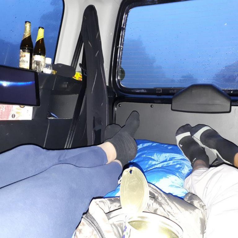 Um halb 7 fuhr ich das Auto bis nach Ruhpolding zum Parkplatz der Rauschbergbahn. Da die Bahn geschlossen hatte, sollte eine Autoübernachtung an dieser Stelle kein Problem sein. Mit Brigittes MTB fuhr ich die 30 Kilometer zurück nach Grassau. Mein MTB ließ ich im Auto, um dann vom 2. Etappenziel zum Start zu gelangen. Und nun konnte unser Abenteuer Watzmann starten. Wir liefen in Richtung Staudacher Alm und weiter zum Hochgern mit seinen 1748 m. Die 1200 Höhenmeter Aufstieg schafften wir knapp unter 2 Stunden. Brigitte war topfit. Der Hochgern war gut besucht, aber einen Platz in der Wiese für eine Rast und Brotzeit fanden wir natürlich. Von dort liefen wir zur urigen Hinteralm hinab, die im Tal zwischen Hochgern und Hochfelln liegt. Gestärkt mit einer kühlen Radler geht es wieder bergauf. Über kleine Singletrails erreichten wir den Hochfellngipfel 1674 m. Die meisten Höhenmeter dieses Tages waren geschafft. Auf spannenden Trails liefen wir in Richtung Ruhpolding. Da unser Weg durch einen Hof führte und die Wegstrecke nicht offensichtlich ausgeschildert war, mussten wir uns von einer grantigen Bäuerin dumme Bemerkungen gefallen lassen. Den Weiler Egg deklarierte ich als unfreundlichsten Ort in den Alpen :-) Die Strecke führte uns durch Ruhpolding bis zu unserem Etappenziel bei der Rauschbergbahn, wo unser Auto auf uns wartete. In der "Weißen Traun" versuchten wir uns im eisigen Wasser etwas frisch zu machen, bevor wir in Ruhpolding zum Pizzaessen gingen. In unserem Caddy richteten wir uns dann ein gemütliches Bett ein, bestehend aus Luftmatratze und Schlafsack. Gemütlich schauten wir am Tablet noch einen guten Film, bevor wir müde einschliefen :-)