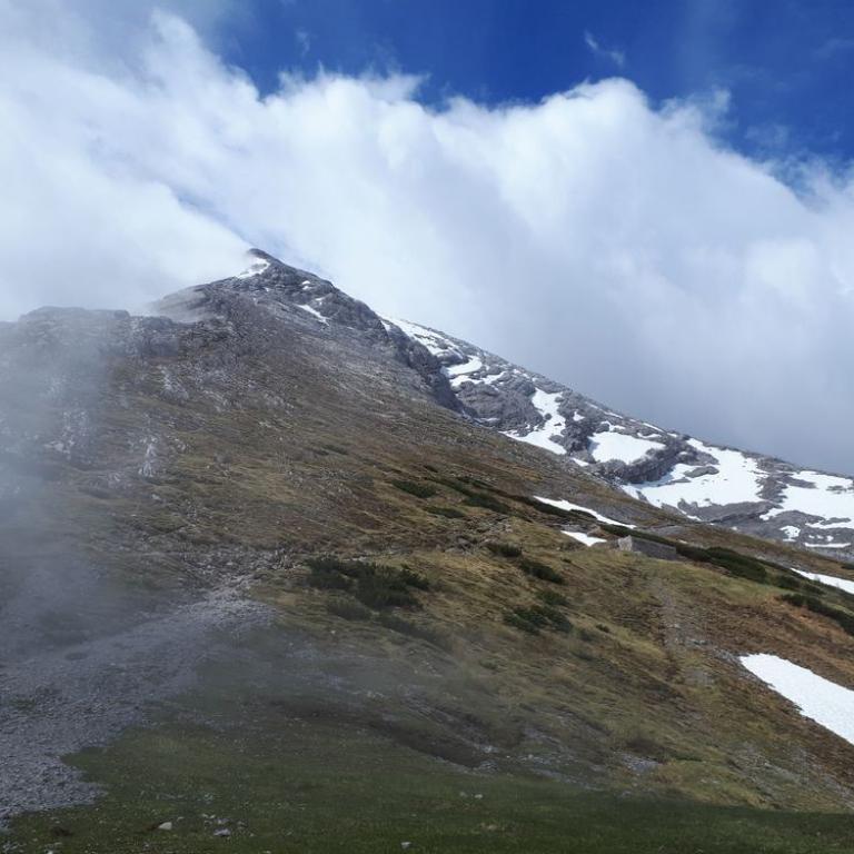 Um 7 Uhr krochen wir aus den Schlafsäcken und packten alles zusammen. Es gab beheizte Toiletten am Parkplatz, die wir gerne nutzen um auch die Zähne im Warmen zu putzen. Obwohl es nieselte entschieden wir uns für den Aufstieg zum Watzmannhaus. Angeschrieben waren 4 Stunden, aber wir schafften die 1300 Höhenmeter in 2 Stunden. Zum Schluss mussten wir noch über ein Schneefeld klettern und wie bestellt verzogen sich Nebel und Wolken und der Watzmann zeigte sich uns in seiner vollen Pracht. Das Watzmannhaus hatte geschlossen, aber der Winterraum war offen. Hier konnten wir uns umziehen und auch unsere mitgebrachte Brotzeit essen. Auf dem Aufstiegsweg liefen wir nach unten. Da die Stubenalm geöffnet hatte, kehrten wir auf eine Radler und Kuchen ein. Nach insgesamt 4 Stunden und 14 Kilometer erreichten wir wieder das Auto. Auf drei Tagen legten wir 76 Trailkilometer mit 5000 Höhenmetern zurück. Respekt Brigitte vor deiner Leistung. Es hat wie immer viel Spaß mit dir gemacht :-)